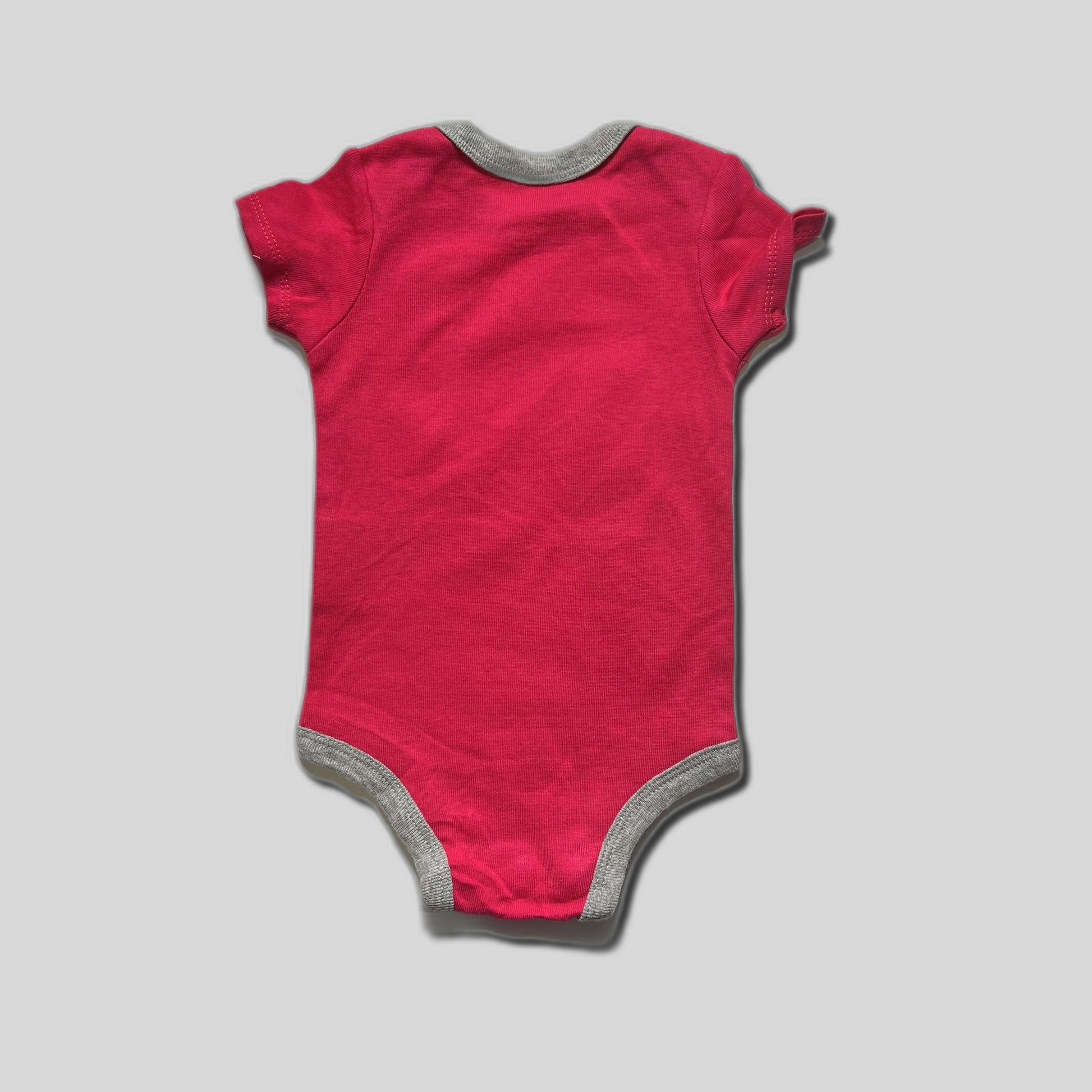 Body roz Nike, un start sportiv pentru puiul tău!. Acest body adorabil, de un roz vibrant, îl va transforma pe cel mic într-o mică vedetă. Logo-ul Nike, imprimat cu alb, adaugă un plus de stil, iar detaliile gri la gât și la mâneci completează perfect designul. Este ideal pentru joacă sau pentru o plimbare în parc, oferind confort și libertate de mișcare. Sistemul de închidere cu capse facilitează schimbarea rapidă a scutecului, transformând această sarcină într-o joacă.