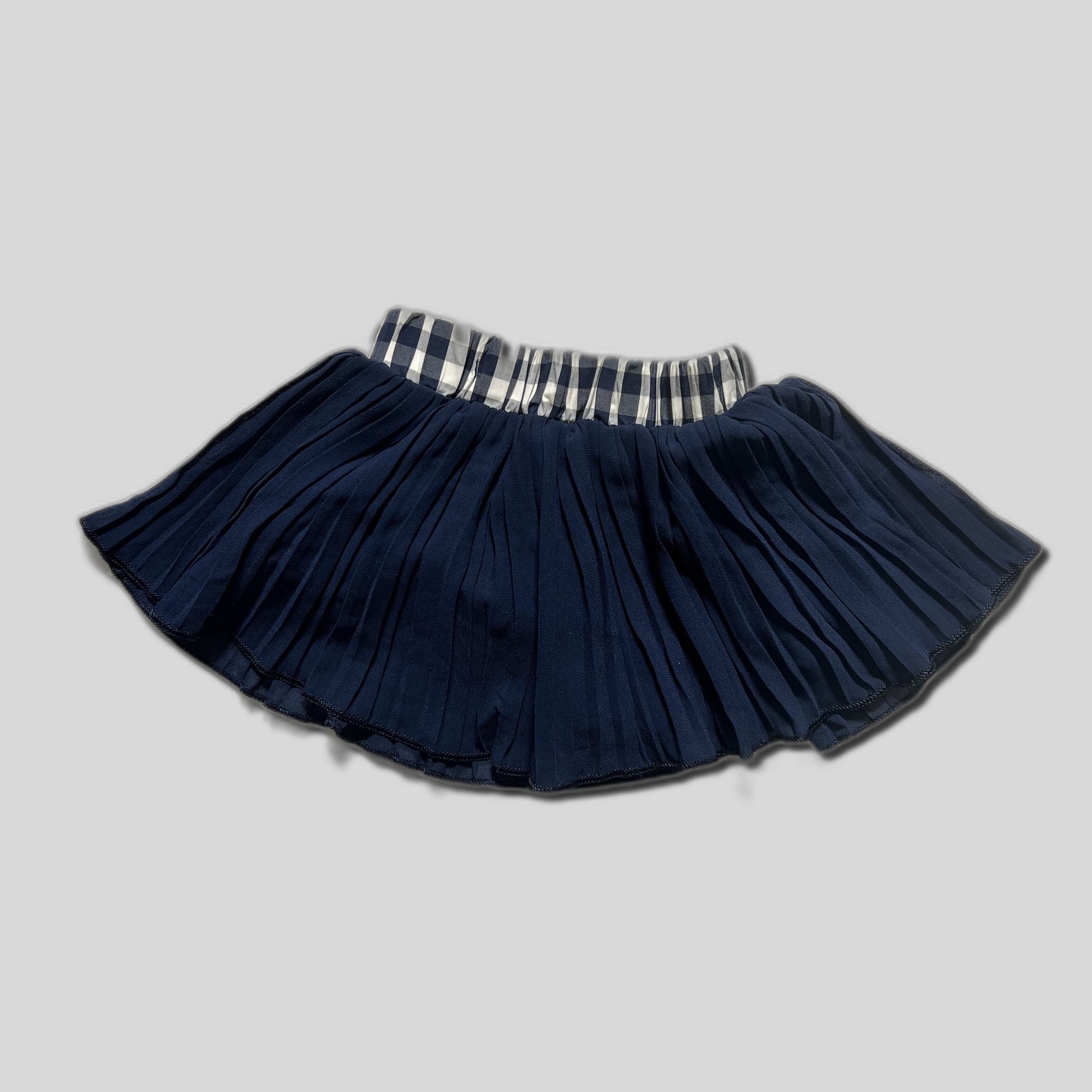 Fustiță plisată bleumarin, chic și jucăușă pentru fetițe. Această fustiță adorabilă va aduce un zâmbet pe chipul oricărei fetițe, fiind perfectă pentru joacă și aventuri. Are un design plisat care oferă libertate de mișcare, ideală pentru zilele active ale copilului tău. Talia elastică cu model în carouri asigură o potrivire confortabilă și sigură, permițând îmbrăcarea rapidă și ușoară. Culoarea bleumarin este versatilă și ușor de asortat cu diverse bluze și tricouri, creând ținute minunate pentru orice ocazie.