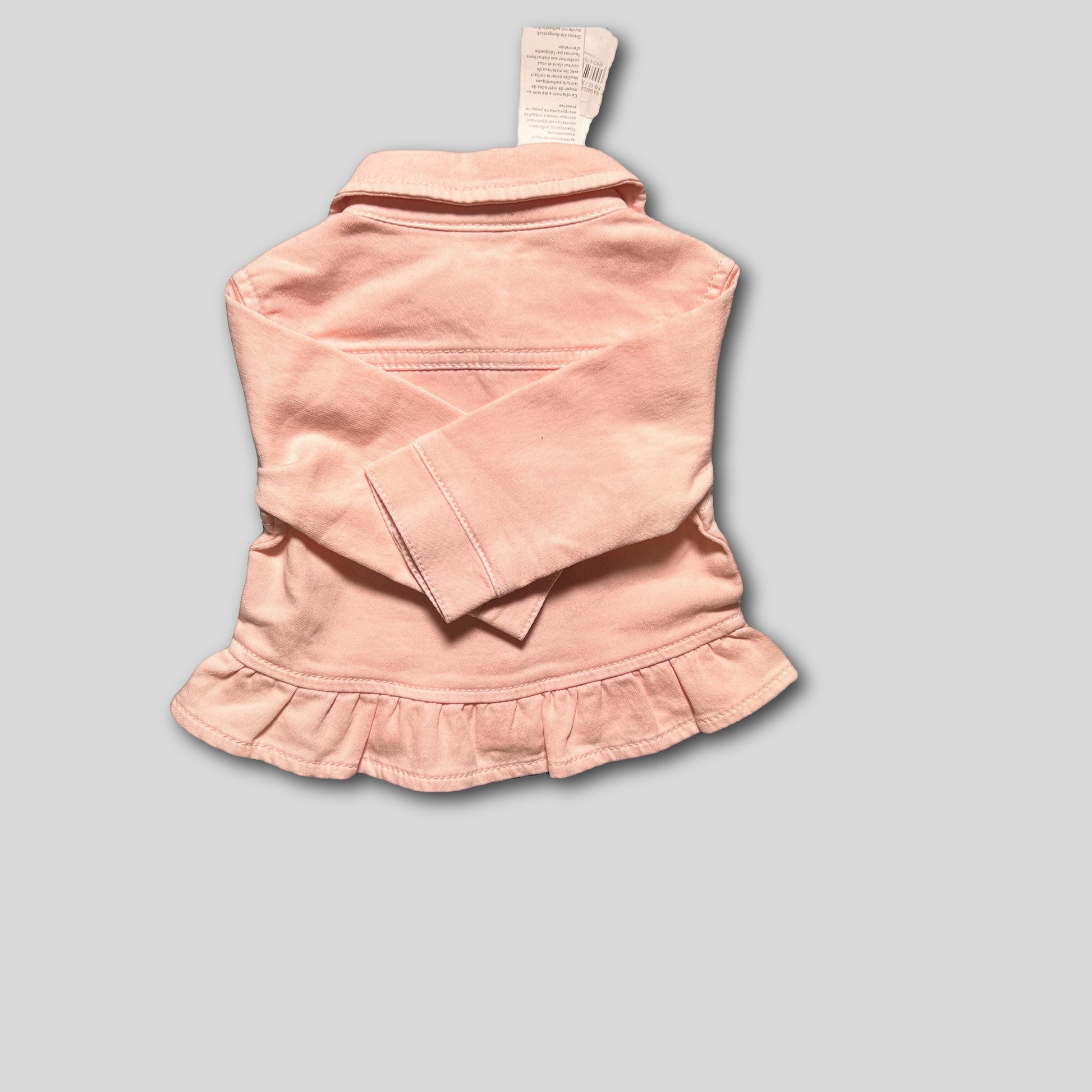 Jacheta fetițe roz delicat, stil denim, adorabilă și cochetă. Această jachetă roz pal este perfectă pentru a adăuga un strop de culoare ținutelor celui mic. Are un guler drăguț și nasturi cu inimioare, care vor topi inimile tuturor. Volănașul de la bază adaugă un plus de eleganță și farmec. Este ideală pentru zilele răcoroase de primăvară sau toamnă, oferind confort și stil.