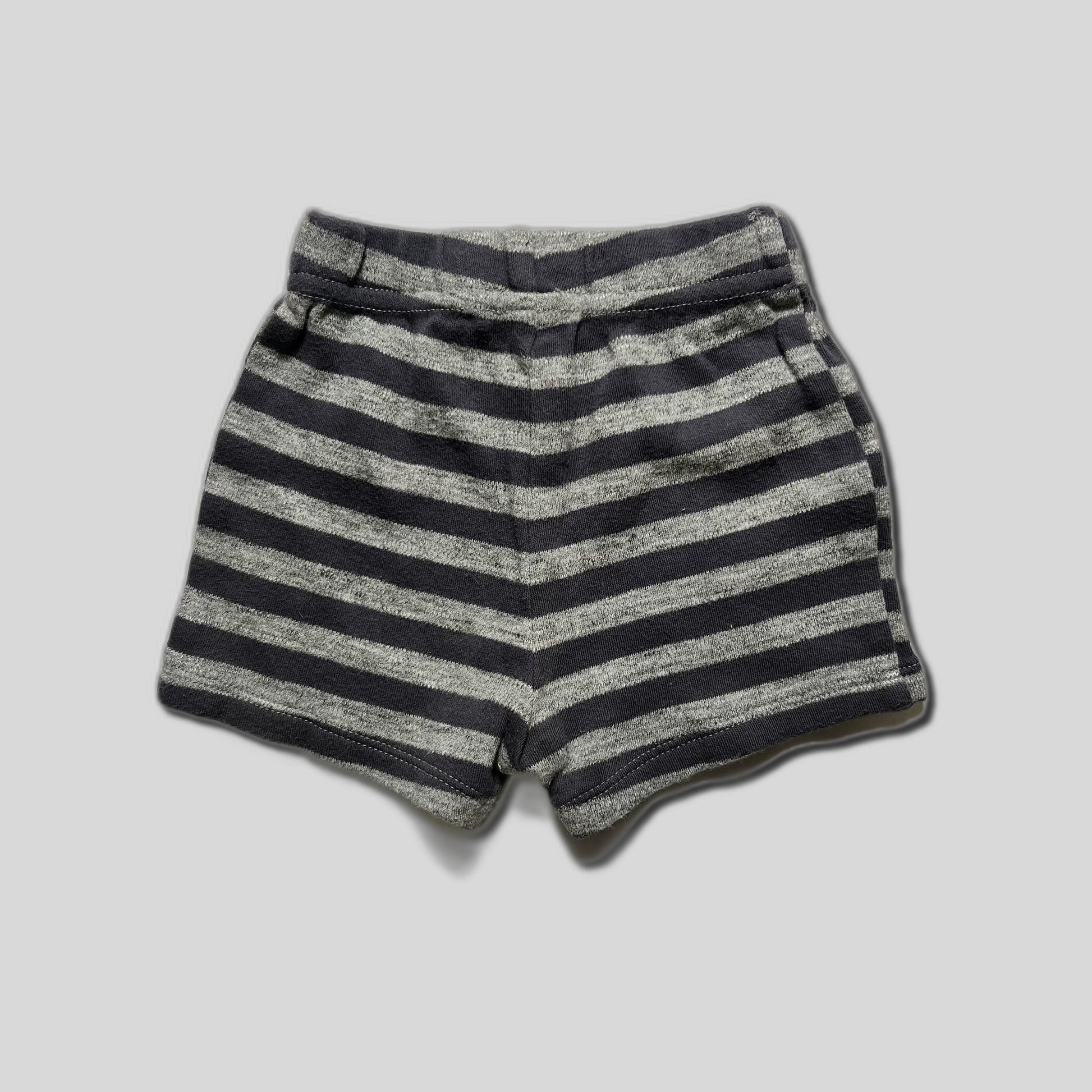 Pantaloni scurți cu dungi gri: Un stil cool și confortabil. Acești pantaloni scurți sunt perfecți pentru joacă și aventuri, oferind libertate de mișcare pentru copilul tău. Designul cu dungi adaugă un plus de stil, transformând o ținută simplă într-una specială. Materialul moale este delicat cu pielea, asigurând confort pe tot parcursul zilei. Sunt ideali pentru zilele călduroase de vară, dar pot fi purtați și în interior, pentru un look relaxat și plin de energie.