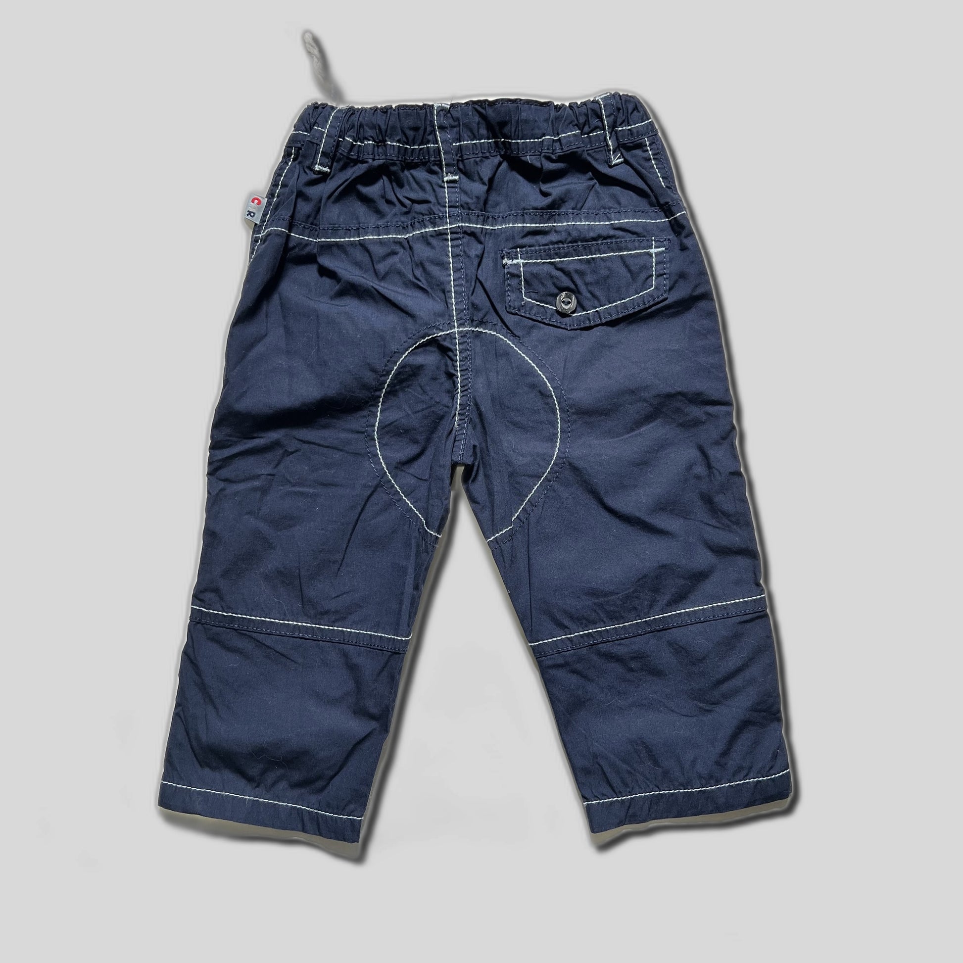 Pantaloni bleumarin aventură cool pentru exploratorii mici. Acești pantaloni bleumarin sunt perfecți pentru joacă și explorare, oferind confort și stil. Designul include cusături contrastante albe, care adaugă un plus de originalitate. Are buzunare practice, inclusiv unul lateral cu nasture, ideal pentru a ascunde mici comori. Materialul este rezistent, dar moale, perfect pentru pielea sensibilă a copilului tău. Cu siguranță, vor deveni rapid preferații lui pentru toate aventurile zilnice.