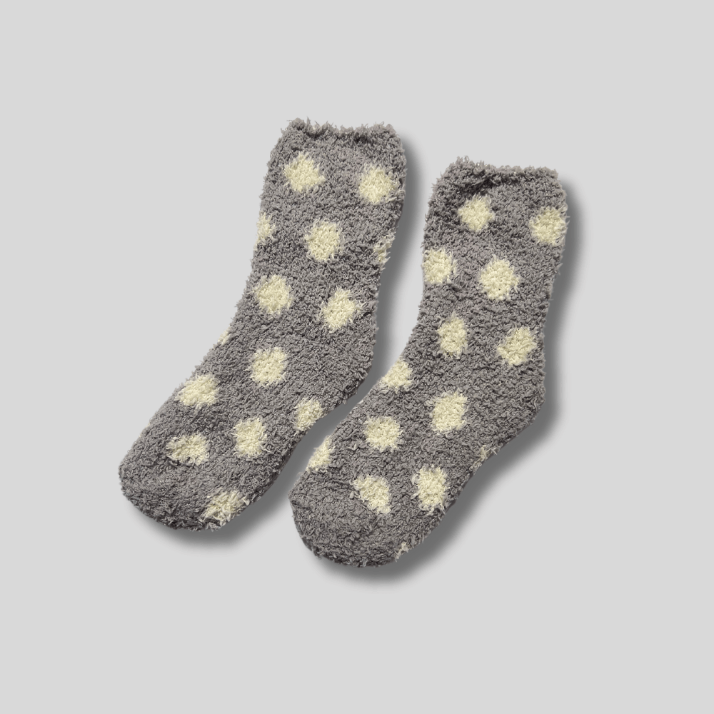Sosete pufoase gri cu buline