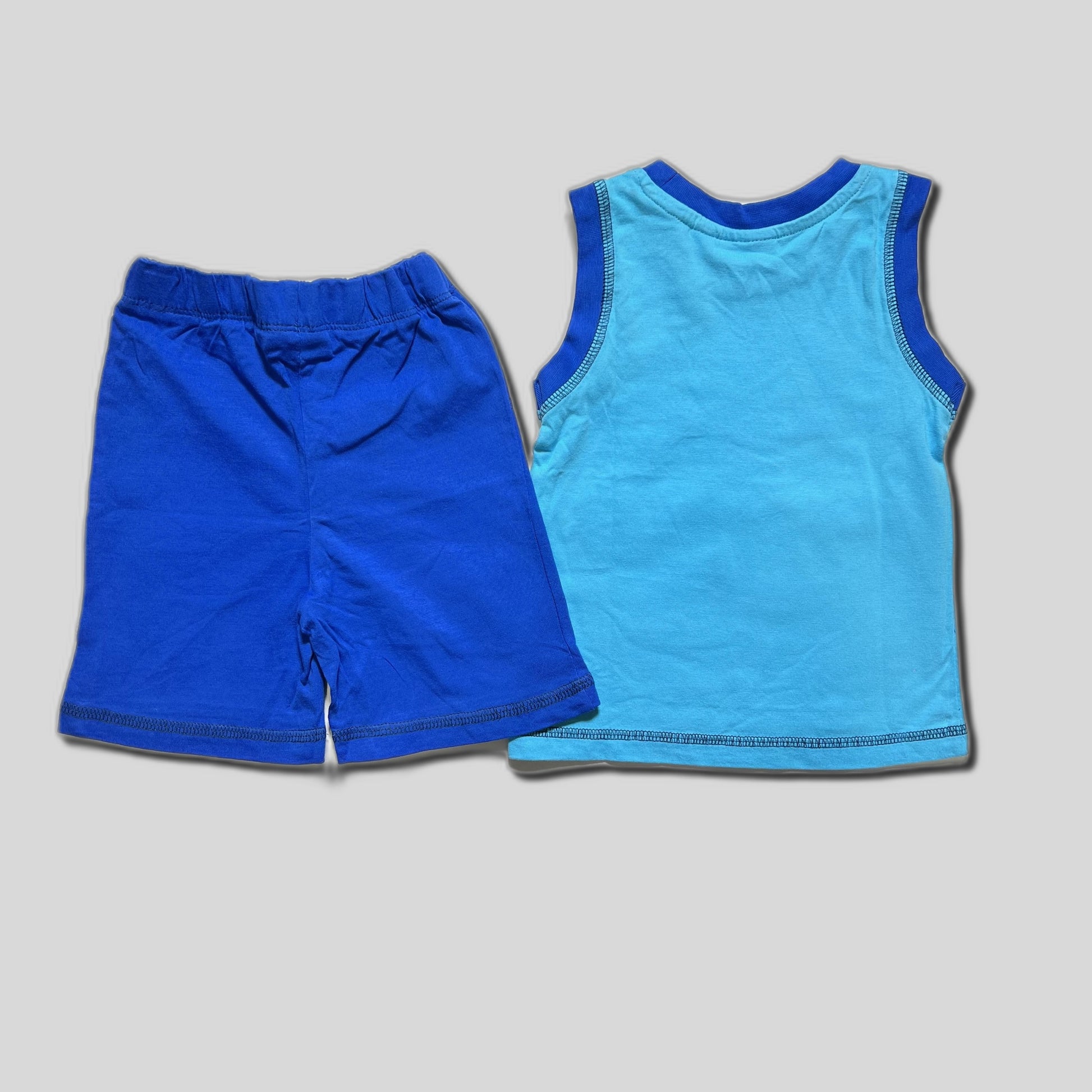 Set de vară Cool Pirates albastru: Un set perfect pentru aventurile estivale ale celui mic. Maieul albastru deschis îl va transforma pe copilul tău într-un pirat cool, datorită imprimeului haios cu corabie și personaj simpatic. Pantalonii scurți albastru intens, cu elastic în talie, asigură confort maxim în timpul jocului.