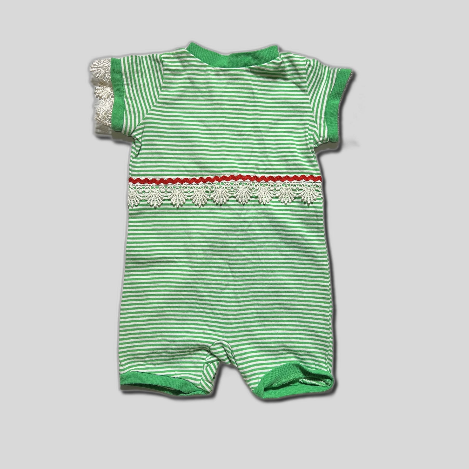 Salopetă Verde Veselă cu Dungi este perfectă pentru joacă. Această salopetă adorabilă, în nuanțe de verde și alb, aduce un strop de culoare în garderoba celui mic. Are un design cu mâneci scurte, decorate cu dantelă fină, ideal pentru zilele călduroase. Un curcubeu brodat și aplicat adaugă un plus de magie, transformând fiecare zi într-o aventură. Închiderea cu nasturi facilitează îmbrăcarea și dezbrăcarea, oferind confort atât pentru tine, cât și pentru copilul tău.
